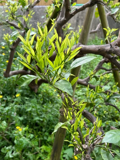 何にも無い所から柿の新芽が出て来るのがとても美しく見とれる事が有ります。