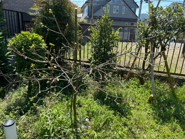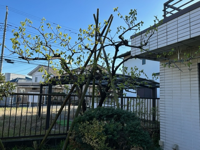 何にも無い所から柿の新芽が出て来るのがとても美しく見とれる事が有ります。
